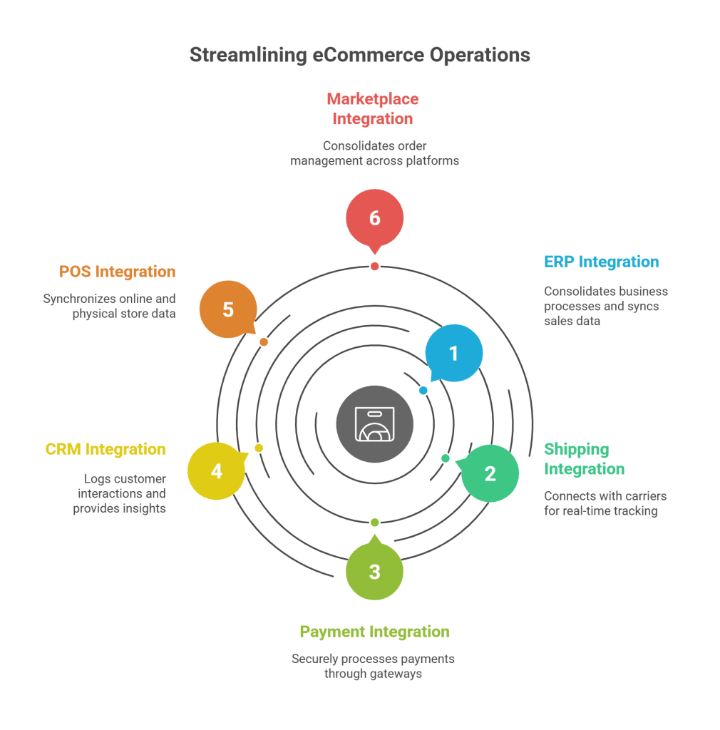 This means linking your eCommerce platform to software like ERP, CRM, payment gateways, shipping providers, and inventory management systems. With a fully integrated system, data flows effortlessly between platforms, reducing manual work and ensuring accuracy.